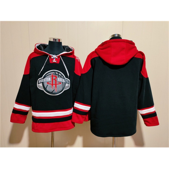 Men's Houston Rockets Blank Black Red Lace-Up Pullover Hoodie