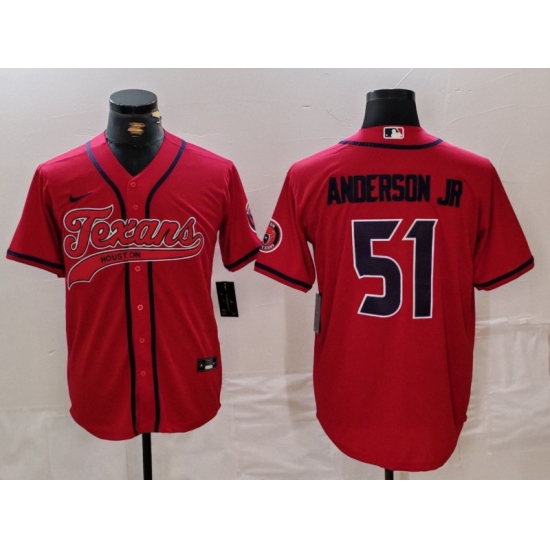 >Men's Houston Texans #51 Will Anderson Jr Red With Cool Base Stitched Baseball Jersey