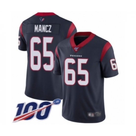 >Men's Houston Texans #65 Greg Mancz Navy Blue Team Color Vapor Untouchable Limited Player 100th Season Football Jersey