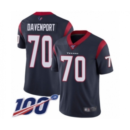 >Men's Houston Texans #70 Julien Davenport Navy Blue Team Color Vapor Untouchable Limited Player 100th Season Football Jersey