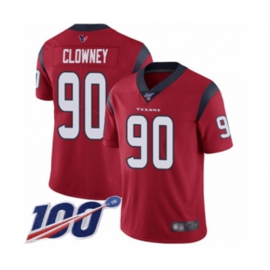 >Men's Houston Texans #90 Jadeveon Clowney Red Alternate Vapor Untouchable Limited Player 100th Season Football Jersey