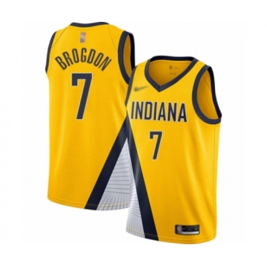 >Men's Indiana Pacers #7 Malcolm Brogdon Authentic Gold Finished Basketball Jersey - Statement Edition