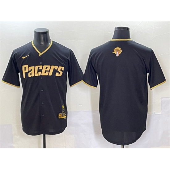 Men's Indiana Pacers Blank Black Gold 2025 Finals Vapor Stitched Baseball Jersey