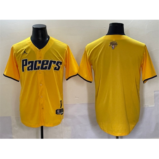 Men's Indiana Pacers Blank Yellow 2025 Finals Vapor Stitched Baseball Jersey