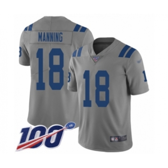 Men's Indianapolis Colts #18 Peyton Manning Limited Gray Inverted Legend 100th Season Football Jersey