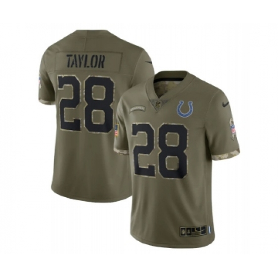 Men's Indianapolis Colts #28 Jonathan Taylor 2022 Olive Salute To Service Limited Stitched Jersey
