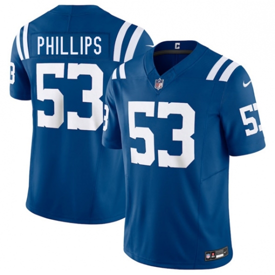 >Men's Indianapolis Colts #53 Jacob Phillips Blue 2025 F.U.S.E. Vapor Limited Football Stitched Jersey
