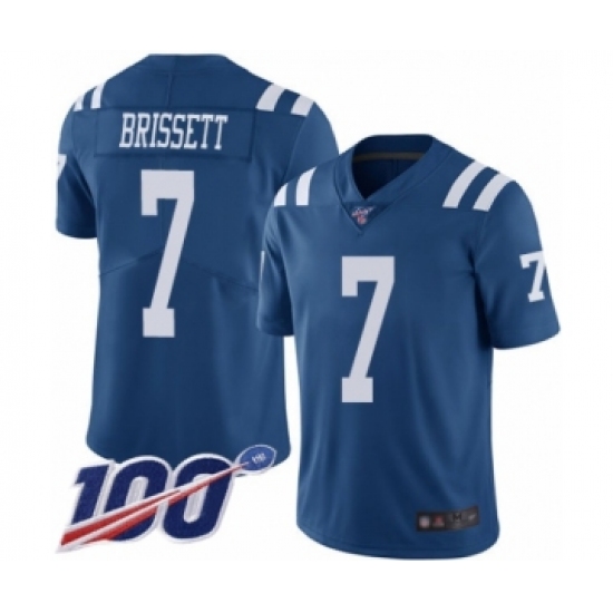 Men's Indianapolis Colts #7 Jacoby Brissett Limited Royal Blue Rush Vapor Untouchable 100th Season Football Jersey