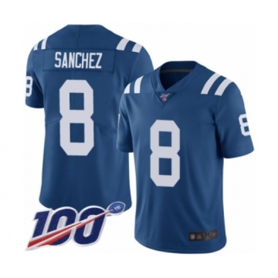 >Men's Indianapolis Colts #8 Rigoberto Sanchez Royal Blue Team Color Vapor Untouchable Limited Player 100th Season Football Jersey