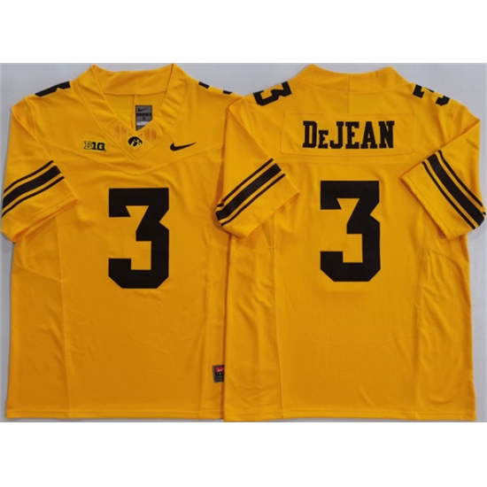 Men's Iowa Hawkeyes #3 Cooper DeJean Yellow F.U.S.E. Stitched Jersey