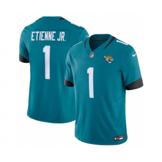 >Men's Jacksonville Jaguars #1 Travis Etienne Jr. Teal Vapor Untouchable Limited Stitched Jersey