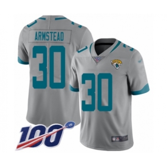 >Men's Jacksonville Jaguars #30 Ryquell Armstead Silver Inverted Legend Limited 100th Season Football Jersey