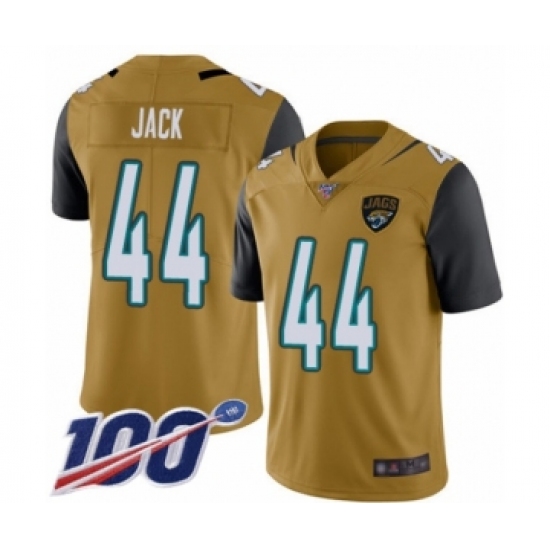 >Men's Jacksonville Jaguars #44 Myles Jack Limited Gold Rush Vapor Untouchable 100th Season Football Jersey
