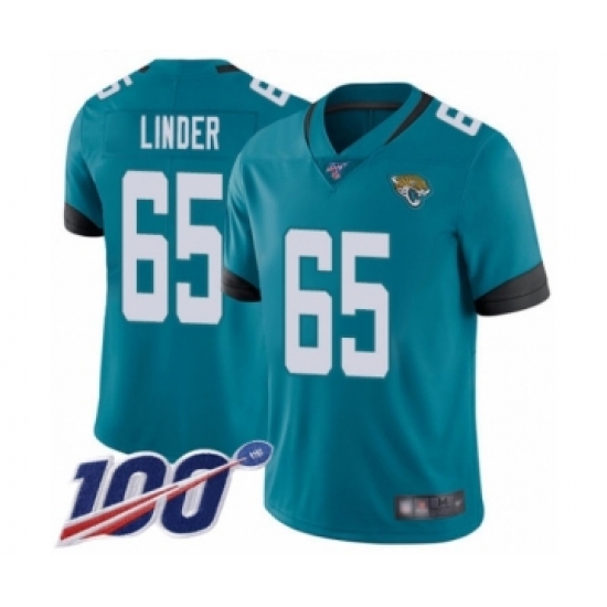 Men's Jacksonville Jaguars #65 Brandon Linder Teal Green Alternate Vapor Untouchable Limited Player 100th Season Football Jersey