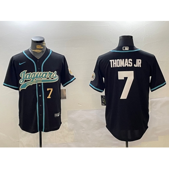 >Men's Jacksonville Jaguars #7 Brian Thomas Jr Black With Cool Base Stitched Baseball Jerseys