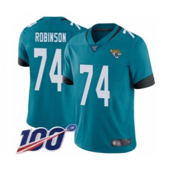 >Men's Jacksonville Jaguars #74 Cam Robinson Teal Green Alternate Vapor Untouchable Limited Player 100th Season Football Jersey