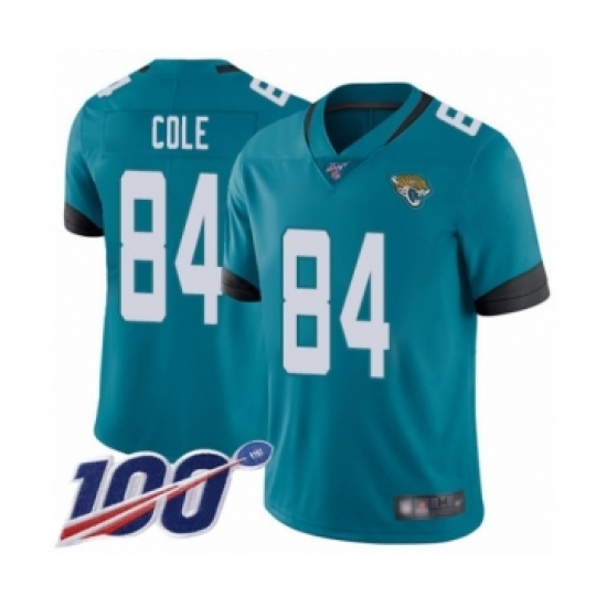 >Men's Jacksonville Jaguars #84 Keelan Cole Teal Green Alternate Vapor Untouchable Limited Player 100th Season Football Jersey