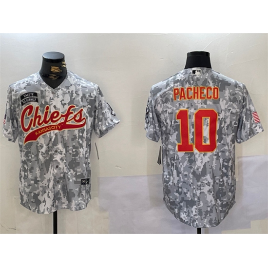 >Men's Kansas City Chiefs #10 Isiah Pacheco 2024 Arctic Camo Salute To Service Stitched Baseball Jersey