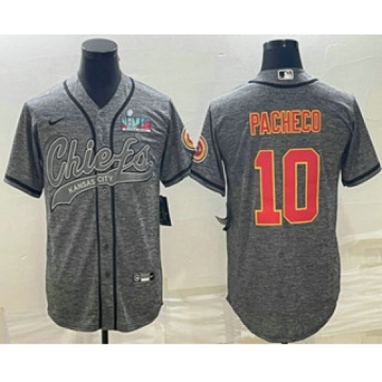 Men's Kansas City Chiefs #10 Isiah Pacheco Grey With Super Bowl LVII Patch Cool Base Stitched Baseball Jersey