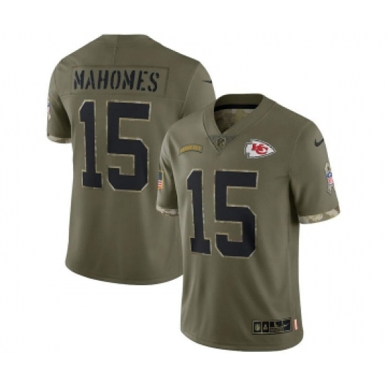 Men's Kansas City Chiefs #15 Patrick Mahomes 2022 Olive Salute To Service Limited Stitched Jersey