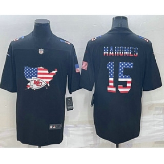 Men's Kansas City Chiefs #15 Patrick Mahomes 2022 USA Map Fashion Black Color Rush Stitched Nike Limited Jersey