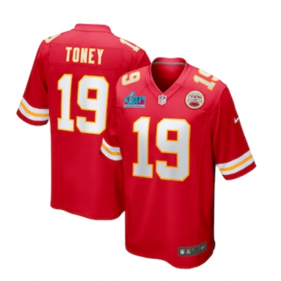 >Men's Kansas City Chiefs #19 Kadarius Toney Nike Red Super Bowl LVII Patch Limited Jersey