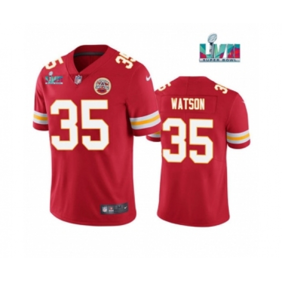 >Men's Kansas City Chiefs #35 Jaylen Watson Red Super Bowl LVII Patch Vapor Untouchable Limited Stitched Jersey