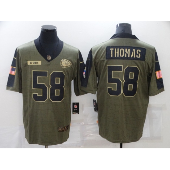 >Men's Kansas City Chiefs #58 Derrick Thomas Nike Olive 2021 Salute To Service Limited Player Jersey