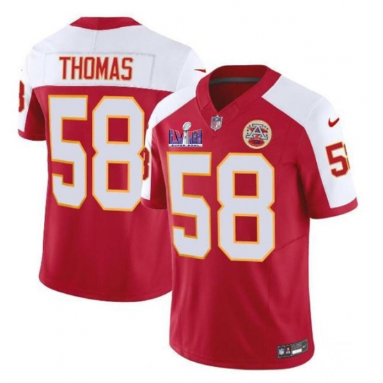 Men's Kansas City Chiefs #58 Derrick Thomas Red White 2024 F.U.S.E. Super Bowl LVIII Vapor Untouchable Limited Football Stitched Jersey