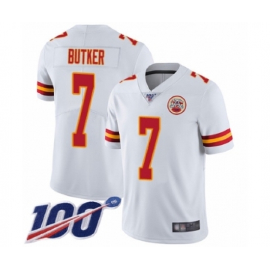 Men's Kansas City Chiefs #7 Harrison Butker White Vapor Untouchable Limited Player 100th Season Football Jersey