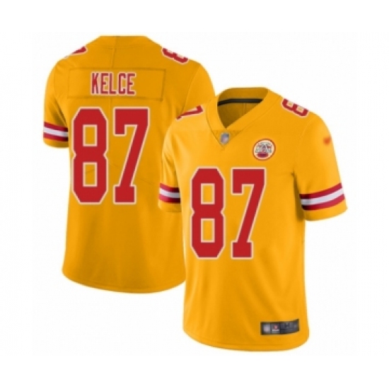 Men's Kansas City Chiefs #87 Travis Kelce Limited Gold Inverted Legend Football Jersey
