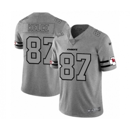 Men's Kansas City Chiefs #87 Travis Kelce Limited Gray Team Logo Gridiron Football Jersey