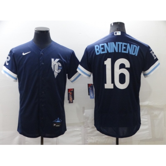 Men's Kansas City Royals #16 Bo Jackson 2022 Navy Blue City Connect Cool Base Stitched Jersey