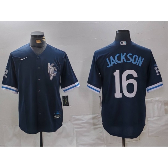 Men's Kansas City Royals #16 Bo Jackson Navy City Connect Cool Base Stitched Jersey
