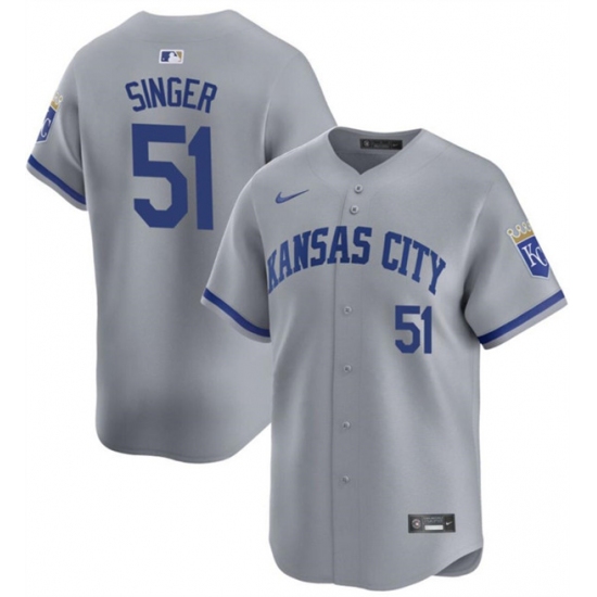 Men's Kansas City Royals #51 Brady Singer Gray Away Stitched Baseball Jersey