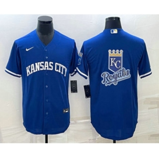 >Men's Kansas City Royals Big Logo Blue 2022 City Connect Cool Base Stitched Jersey