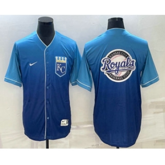 Men's Kansas City Royals Big Logo Nike Blue Fade Stitched Jersey