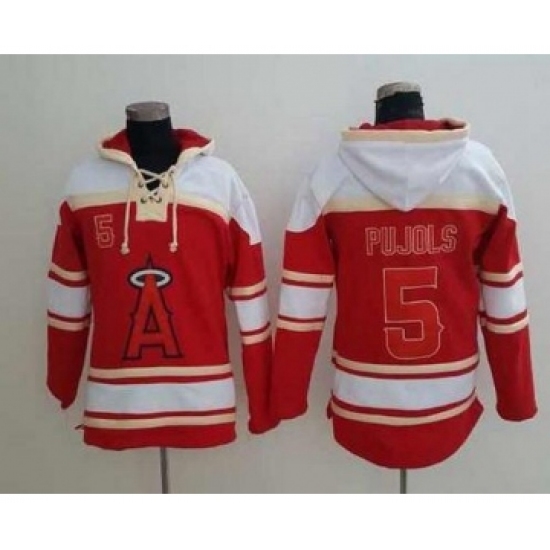 Men's LA Angels Of Anaheim #5 Albert Pujols Red Baseball MLB Hoodie
