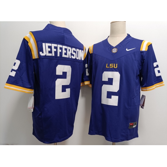 Men's LSU Tigers #2 Justin Jefferson Purple FUSE College Stitched Jersey