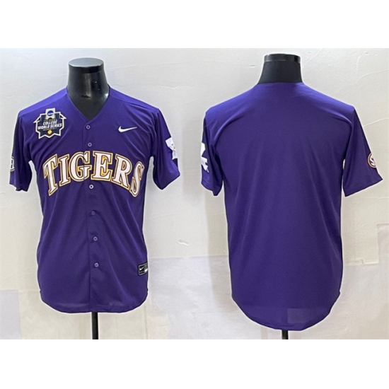 Men's LSU Tigers Blank Purple 2025 World Series & SEC Patch Stitched Baseball Jersey