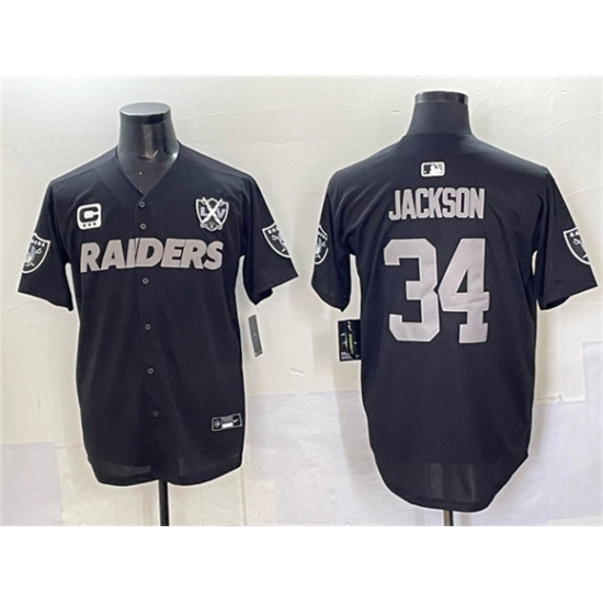 Men's Las Vegas Raiders #34 Bo Jackson Black Limited Stitched Baseball Jersey
