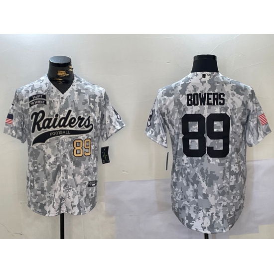 >Men's Las Vegas Raiders #89 Brock Bowers 2024 Arctic Camo Salute To Service Stitched Baseball Jerseys