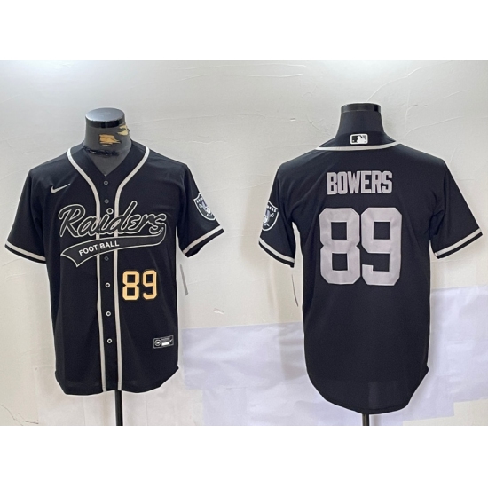 >Men's Las Vegas Raiders #89 Brock Bowers Black Cool Base Stitched Baseball Jerseys