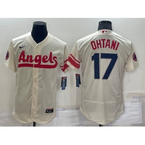 >Men's Los Angeles Angels #17 Shohei Ohtani Cream 2022 City Connect Flex Base Stitched Jersey