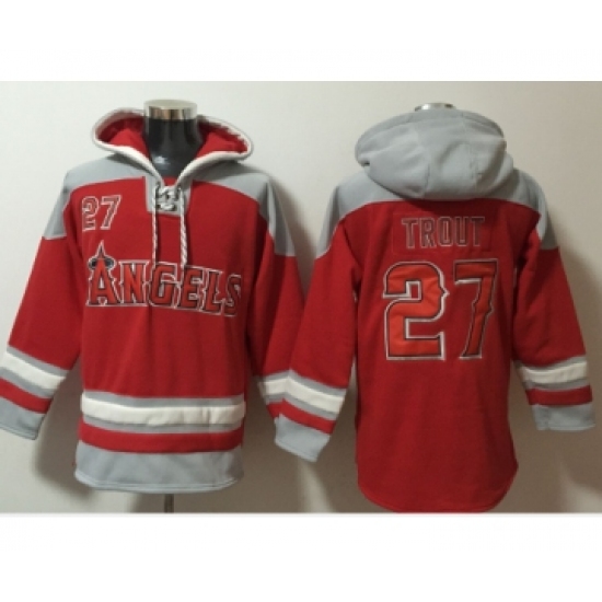 >Men's Los Angeles Angels Of Anaheim #27 Mike Trout Red Ageless Must Have Lace Up Pullover Hoodie