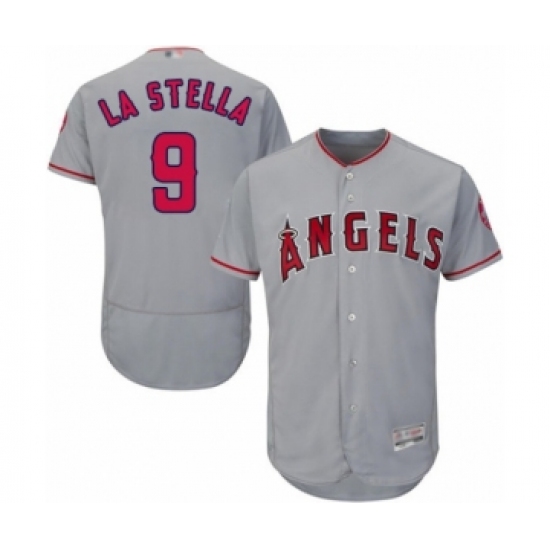 >Men's Los Angeles Angels of Anaheim #9 Tommy La Stella Grey Road Flex Base Authentic Collection Baseball Jersey