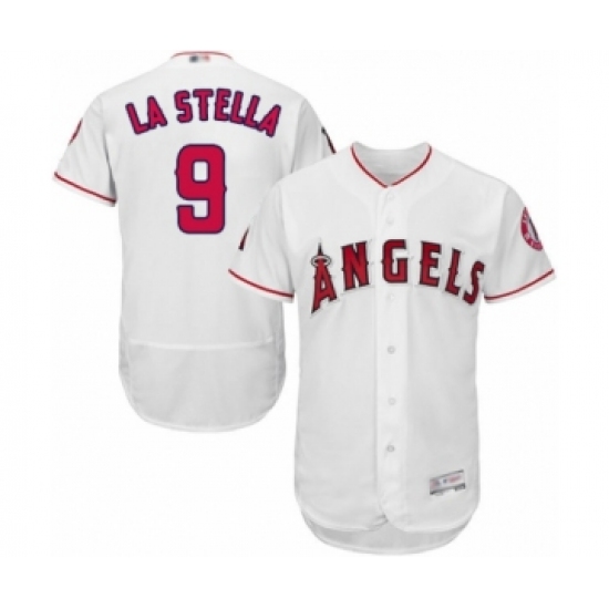 >Men's Los Angeles Angels of Anaheim #9 Tommy La Stella White Home Flex Base Authentic Collection Baseball Jersey