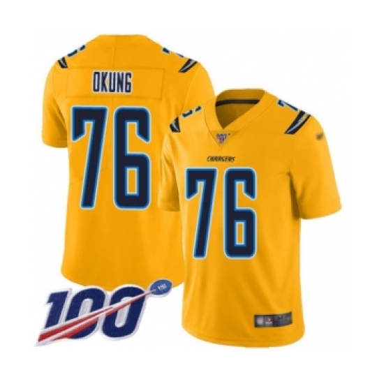Men's Los Angeles Chargers #76 Russell Okung Limited Gold Inverted Legend 100th Season Football Jersey