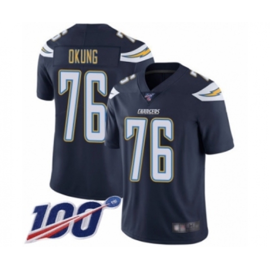 Men's Los Angeles Chargers #76 Russell Okung Navy Blue Team Color Vapor Untouchable Limited Player 100th Season Football Jersey
