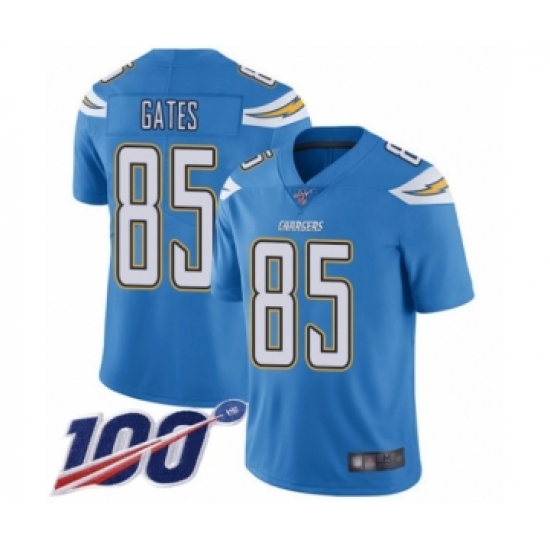 >Men's Los Angeles Chargers #85 Antonio Gates Electric Blue Alternate Vapor Untouchable Limited Player 100th Season Football Jersey